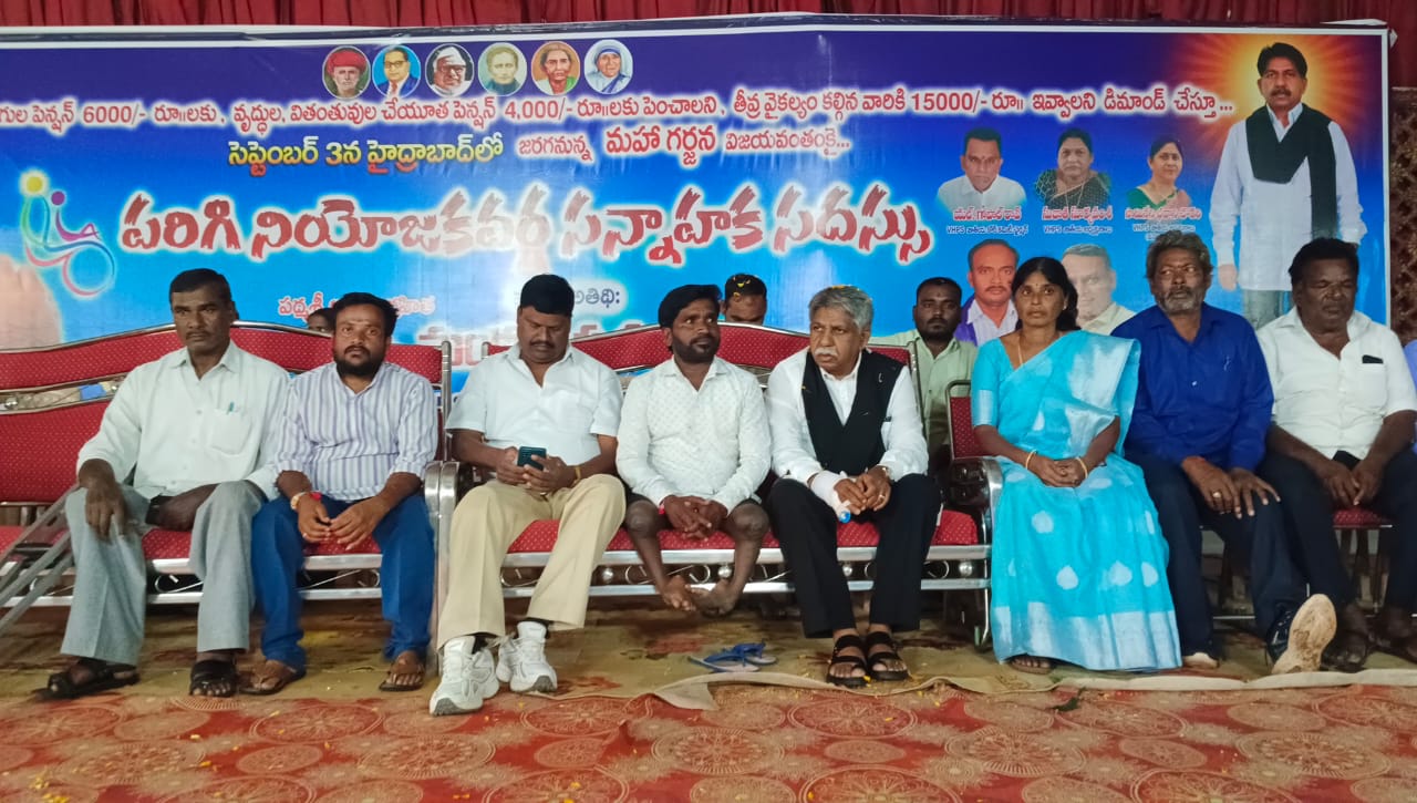 పరిగి పట్టణ కేంద్రంలో వికలాంగుల హక్కుల పోరాట సమితి సన్నాహక సమావేశంలో ఎమ్మార్పీఎస్ వ్యవస్థాపకులు మందకృష్ణ మాదిగ గారు మాట్లాడుతూ సెప్టెంబర్ 3వ తేదీన జరిగే మహాగర్జనను